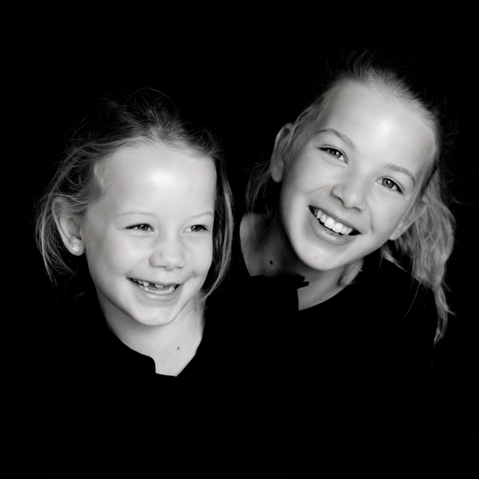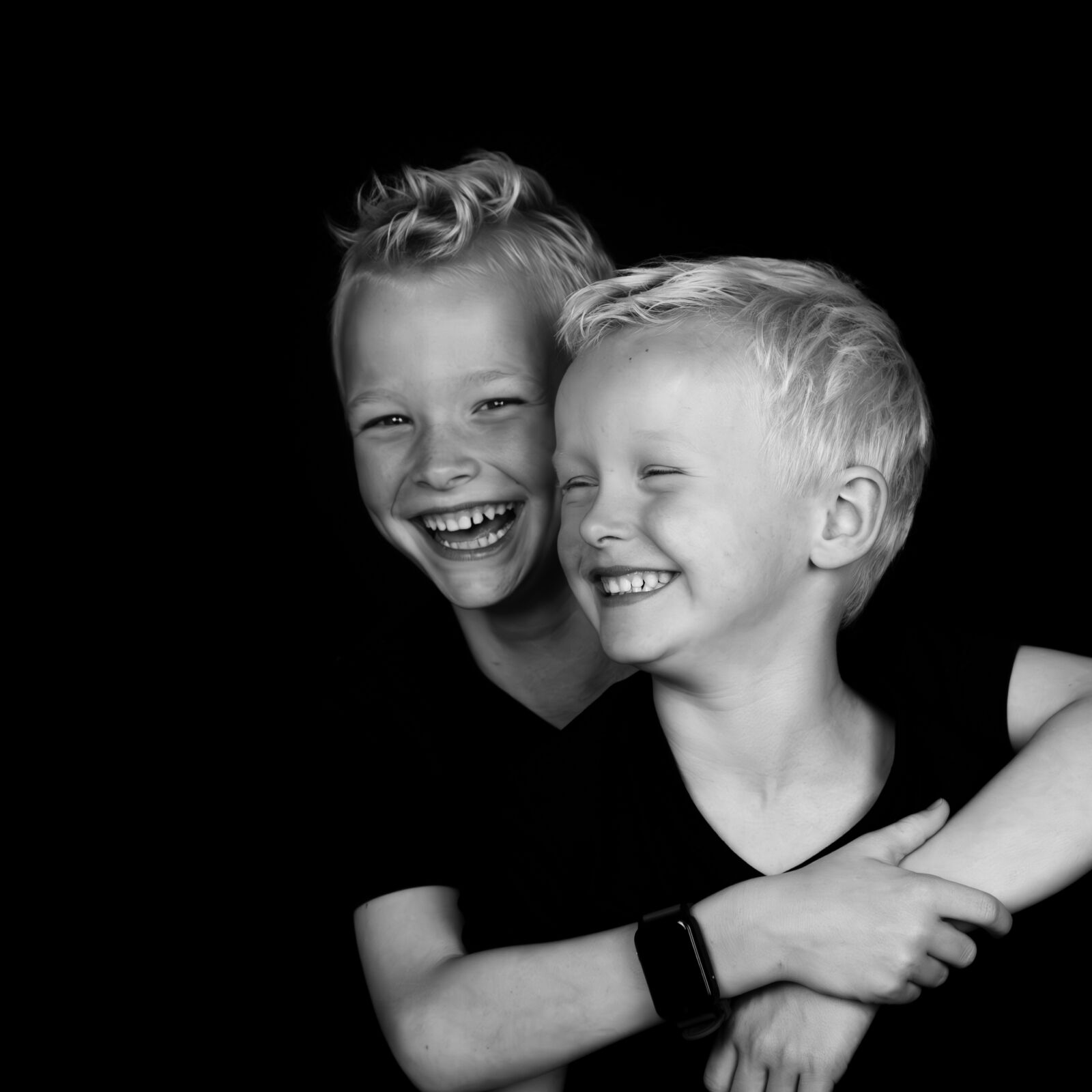Wil jij de kinderen samen op de foto, dat is natuurlijk ook mogelijk. Bij het zwart wit portret is het belangrijk er wel voor zorgen dat de kinderen zwarte bovenkleding aan hebben. liefste met lange mouwen. Ik vind kinderen heerlijk om mee te werken, waar ze thuis misschien soms minder gezellig met elkaar omgaan (dit herkennen we allemaal wel toch?) staan ze er bij mij op de foto toch gezellig samen op.