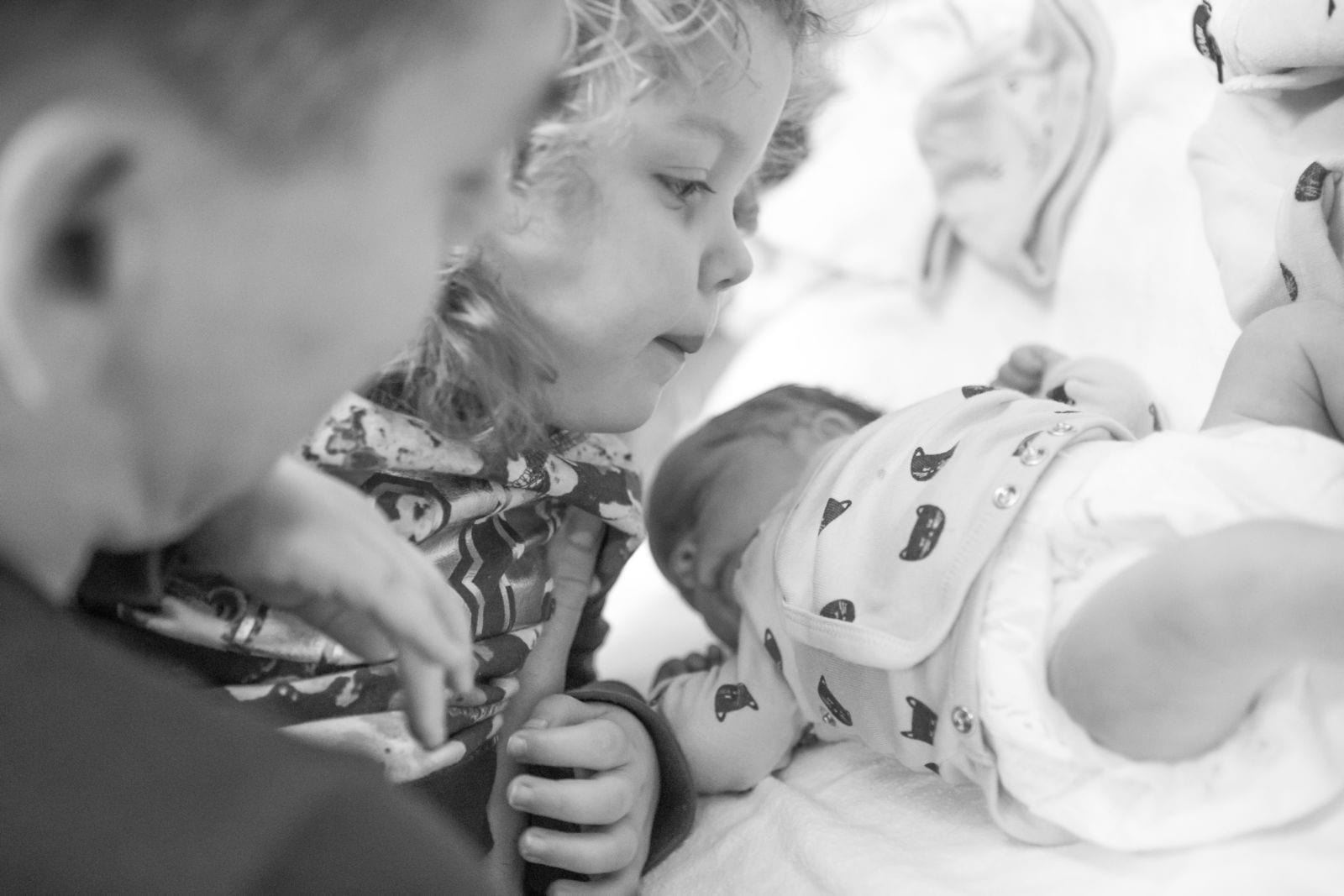 Wakker was ze, een soort van, maar Marjolein, lieve schat wat was je in de war. Zo begrijpelijk nog half verduft van de narcose begreep je niet wat er was gebeurd, en durfde niet te geloven dat jullie meisje gezond geboren was. Dave heeft je heel wat keren verteld wat er gebeurd was, maar door de narcose en de morfine ging er veel langs je heen. Ook hier heb ik alles voor je gefotografeerd. De eerste keer aan de borst. Je eerste kusje. Het even naar haar kijken. Wat vond je het onwerkelijk, was dit echt jouw kindje? Hoe kon dat dan, was alles wat je uitbracht. Gelukkig werd je na verloop van tijd wat helderder. Nog vond je het moeilijk te begrijpen. We mochten terug naar de verloskamer. Daar heeft Dave nogmaals alles verteld. Beetje bij beetje kwam het bij je binnen. Wat was je bang om ook dit meisje te verliezen. Na een korte tijd heeft Dave, Hailey gehaald, zodat ze haar zusje kon zien. En wat was ze meteen lief voor haar. Een klein kusje een aaitje. Mama een kusje en papa een kusje. Nog even met opa bij de baby kijken, en toen ging ze naar huis. Wat een dag ook voor deze kleine grote zus. Gelukkig was zij met opa op de gang toen de noodsprong gemaakt werd. En heeft zij er niets van mee gekregen.