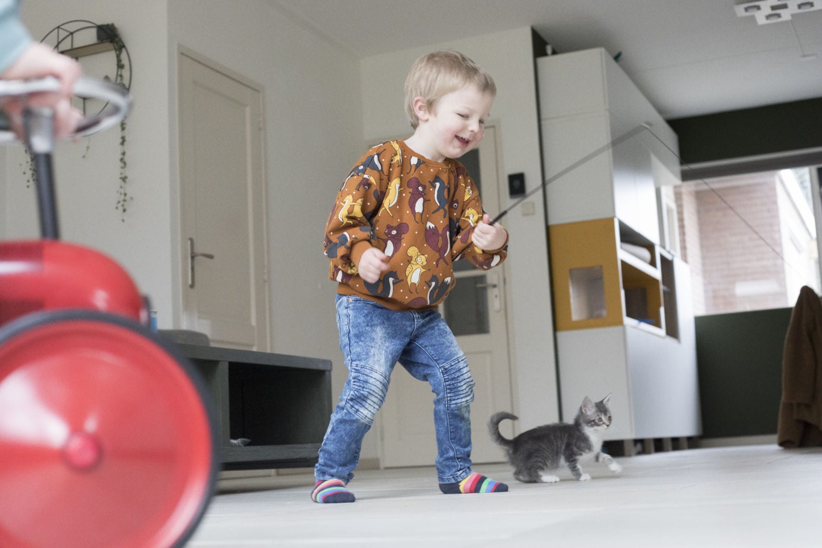 Ik ben voor de voorbeeld foto’s een ochtendje meegelopen in het gezin van Rens en Judith. Ik mocht al eens eerder bij hen fotograferen, het was daarom leuk om de kinderen weer te zien. Ik had de jongste het laatste gezien toen hij nog geen 2 weken oud was, nu 16 maanden en wat een beer is het geworden. En vlot, want lopen doet hij als een veel ouder kind… heel leuk om even mee te lopen bij deze deugnieten….