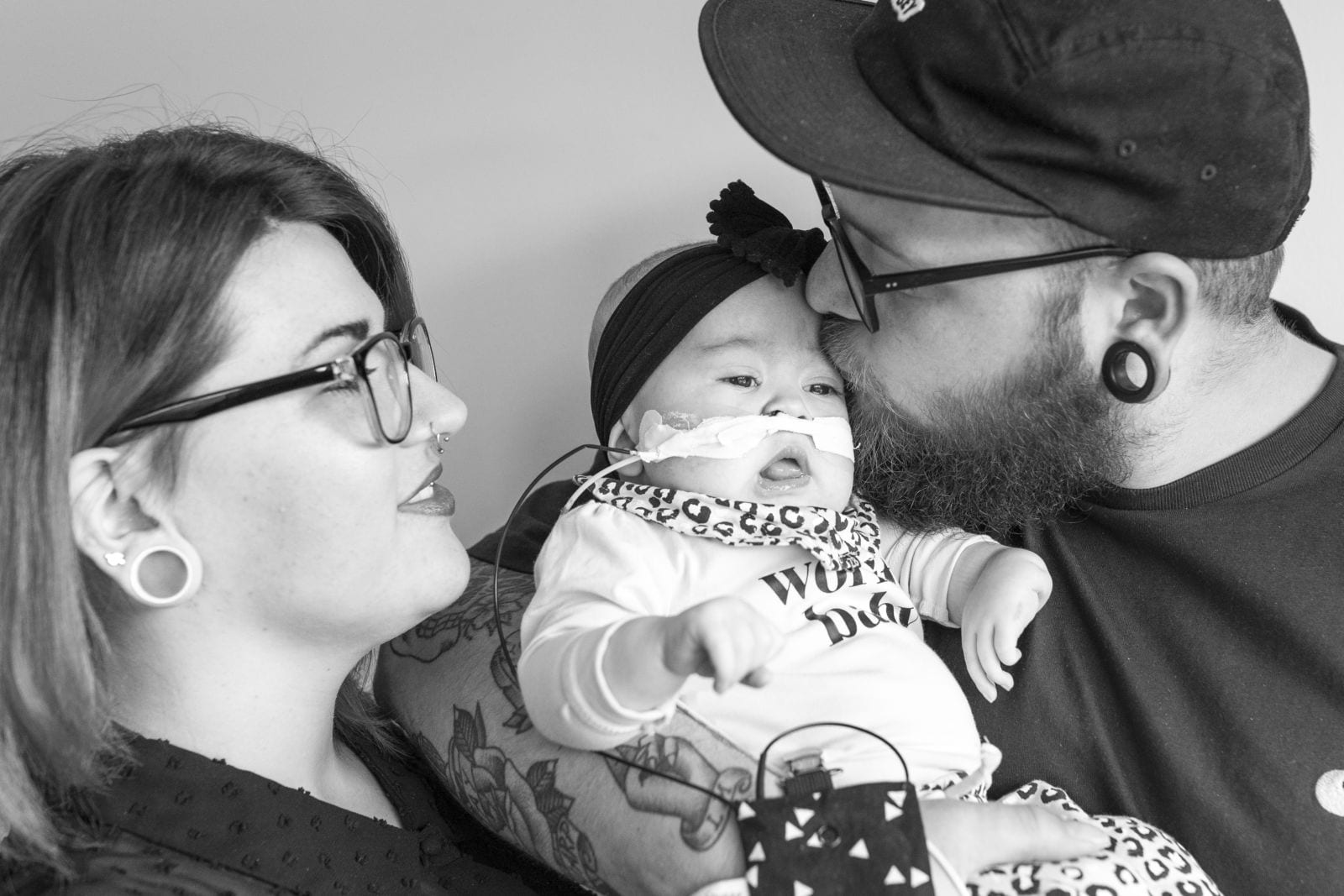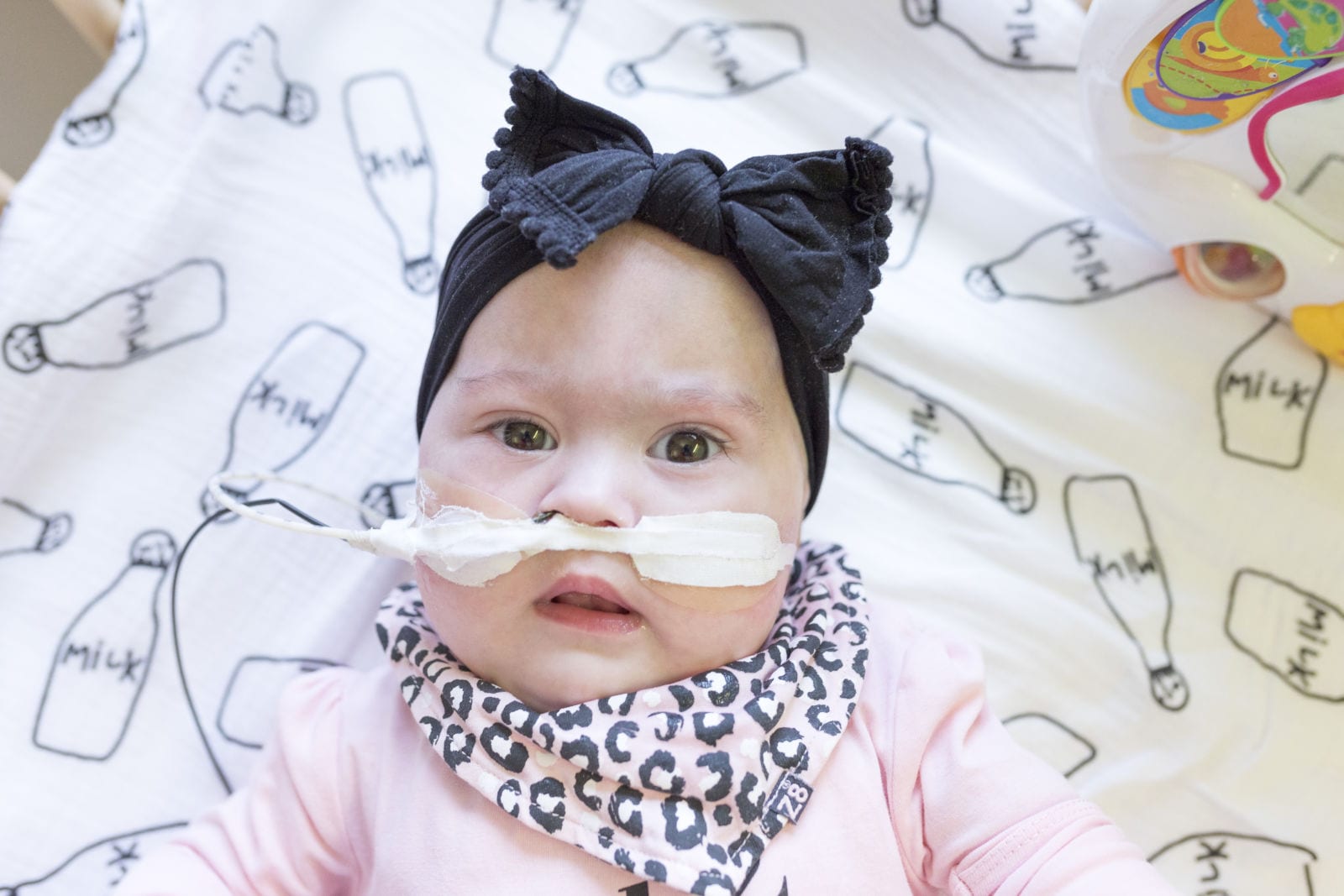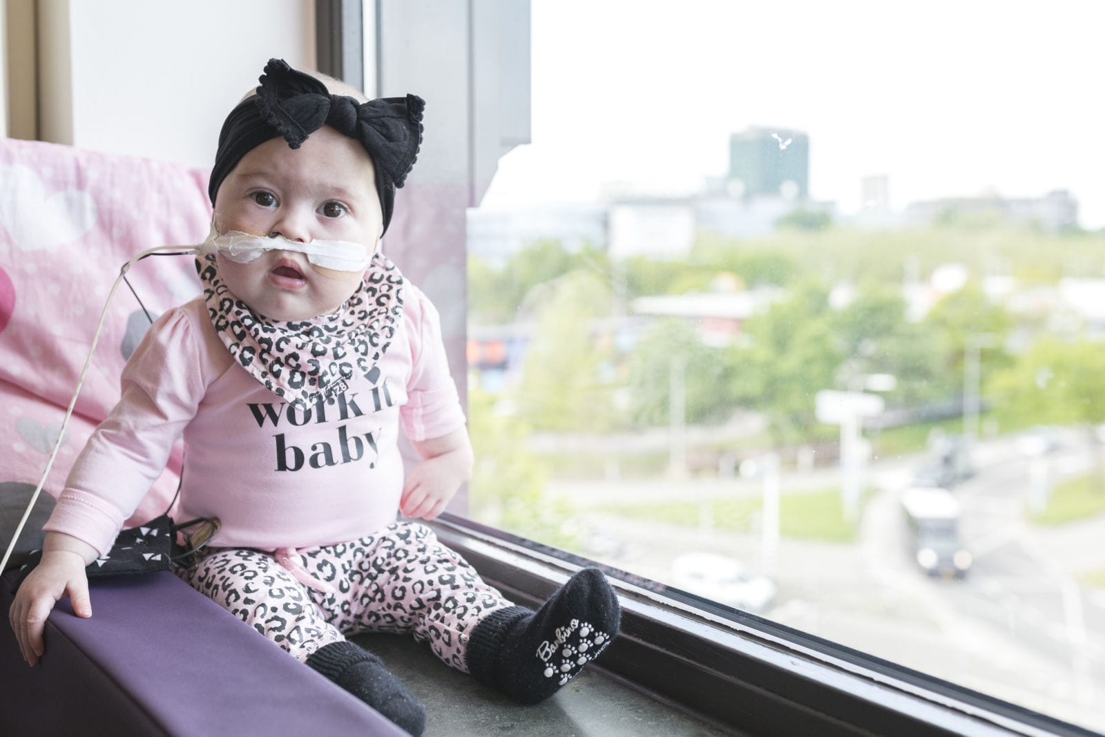 Ik was op 3 mei 2019 in het ziekenhuis en toen zij 7 maanden oud was en al 12 keer geopereerd is. In haar korte leventje is zij hele korte periodes thuis geweest, maar het kamertje op de foto’s is voor haar meer thuis, dan hun eigen huis. Papa en mama wonen al geruime tijd in het Ronald Mc Donalds huis naast het WKZ.