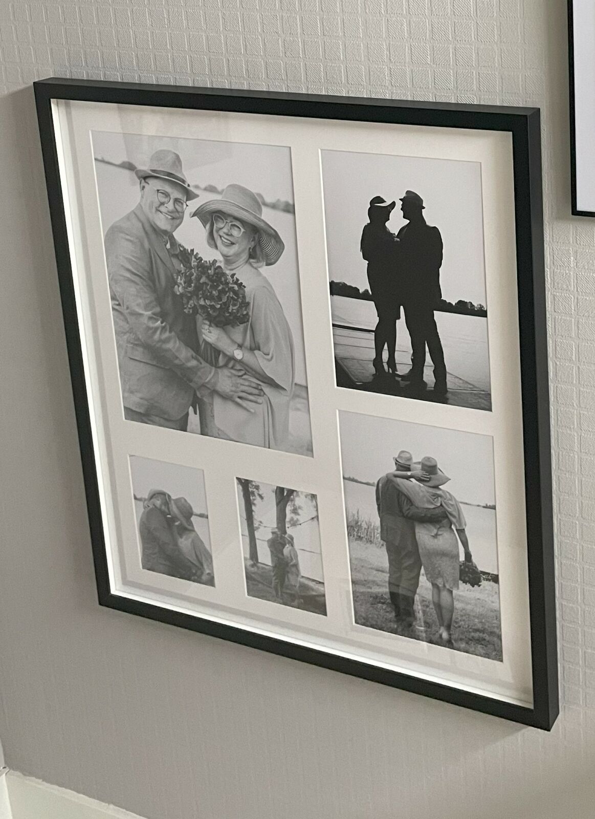Na deze fantastische ervaring hadden mijn zus en zwager nog een grote verrassing. Als cadeau voor ons huwelijk kregen mijn grote liefde en ik een trouwreportage van Marjolijn cadeau! Ondertussen was Marjolijn al zo onderdeel van onze familie geworden dat het heel natuurlijk was dat zij een dagdeel bij onze trouwdag aanwezig was. Wij vierden het heel klein en intiem met onze naaste familie en wilden graag dat Marjolijn op de feestlocatie foto’s van het gezelschap zou maken om de mooie sfeer vast te leggen. Dat heeft ze weer fantastisch gedaan! Mijn man en ik hebben er een enorme klus aan gehad om een selectie uit alle prachtige foto’s te kunnen maken. Echte keuzestress, en ook daar helpt Marjolijn deskundig bij. Vanuit de selectie hebben we een prachtig trouwalbum door haar laten maken. We kregen een link met alle foto’s voor de gasten en hebben uiteraard weer een prachtige wissellijst met foto’s in huis hangen.