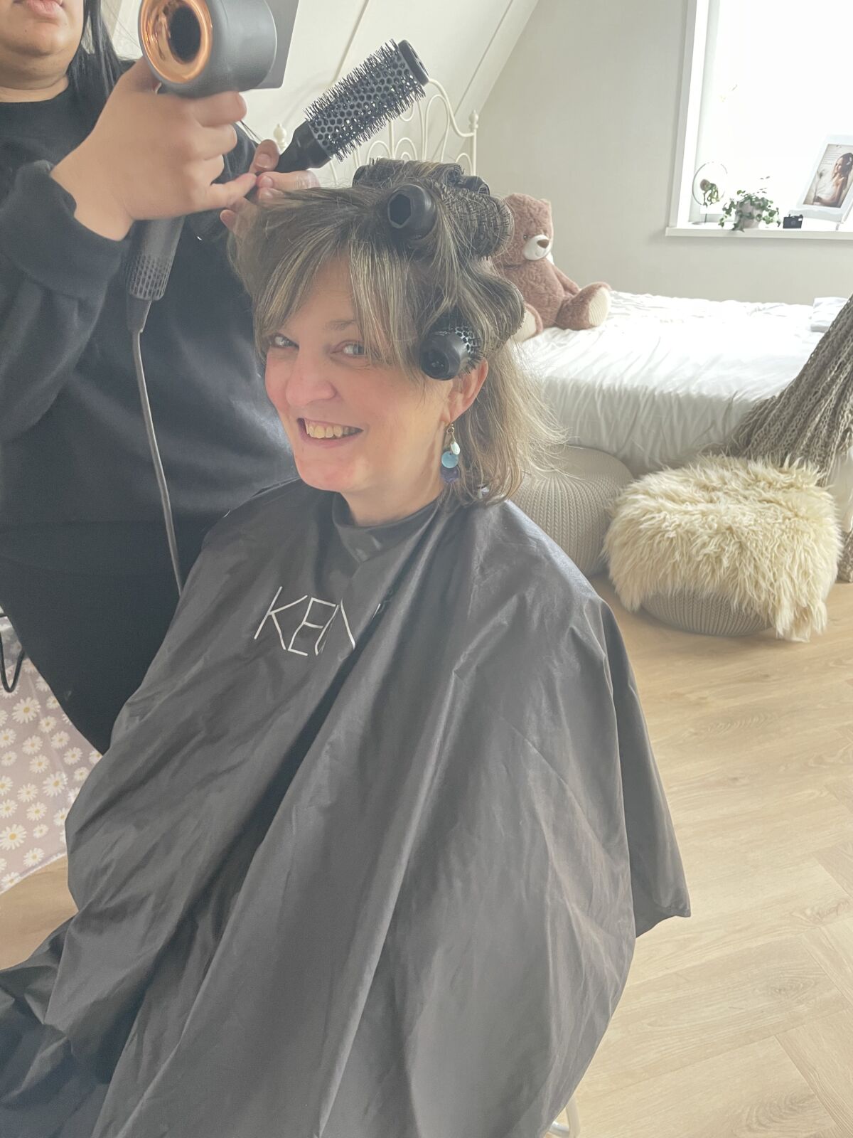 We werden hartelijk ontvangen door Roos (visagiste/kapster/styliste van Newlook by Kim) en Marjolijn met een lekker welkomstdrankje. Er waren allemaal lekkere hapjes. Het werd een heerlijke ontspannen verwenmiddag. We werden door Roos prachtig opgemaakt. Dat was volledig naar eigen wens. Het kon helemaal over de top. Wij kozen allebei voor een natuurlijke look. Haartjes werden mooi gedaan. Heerlijk was het.